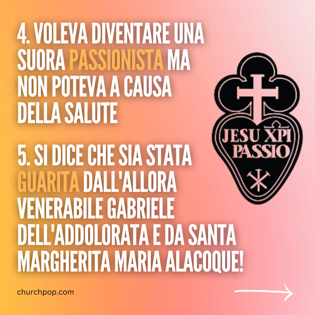 5. Si dice che sia stata guarita dall'allora Venerabile Gabriele dell'Addolorata e da Santa Margherita Maria Alacoque!
