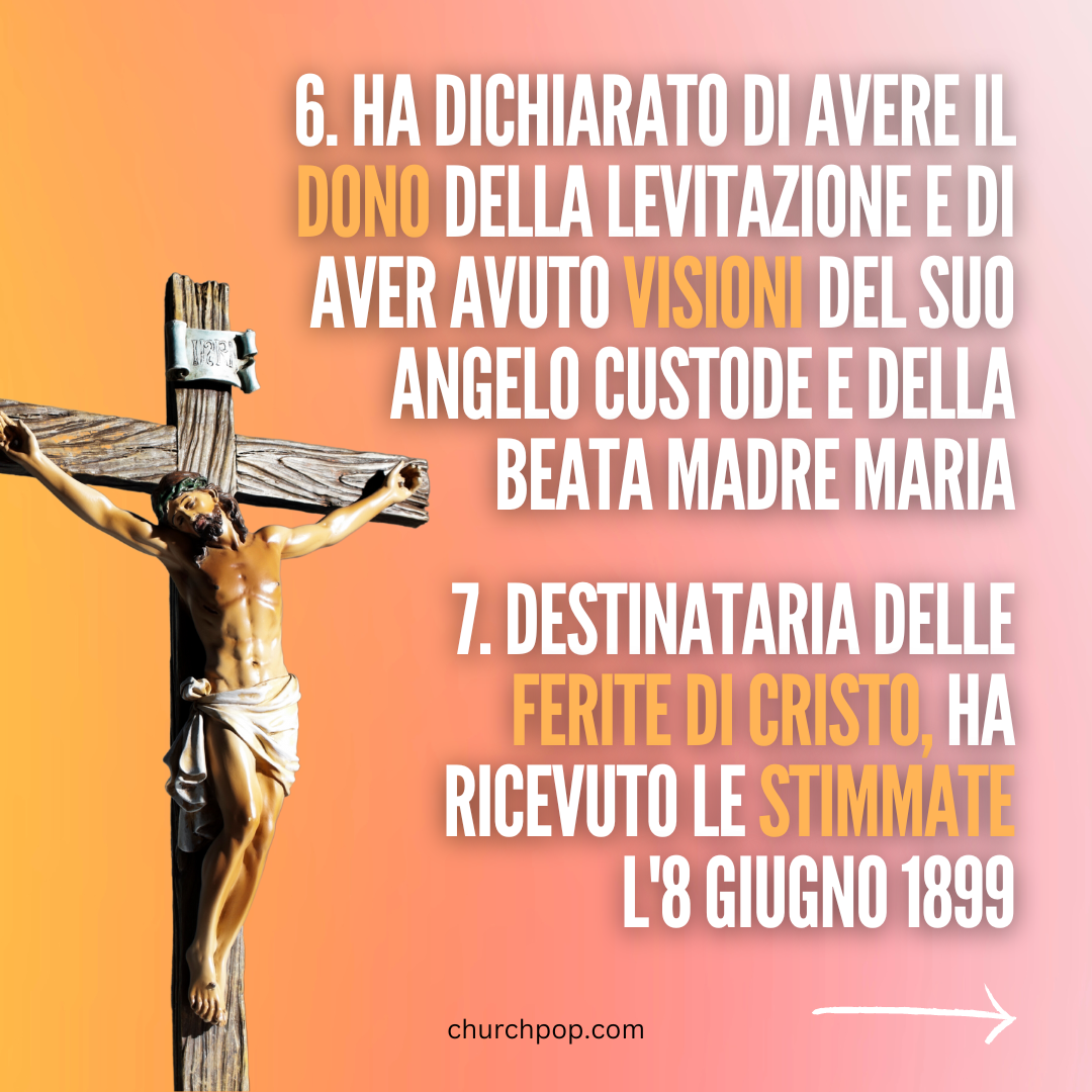 7. Destinataria delle ferite di Cristo, ha ricevuto le stimmate l'8 giugno 1899