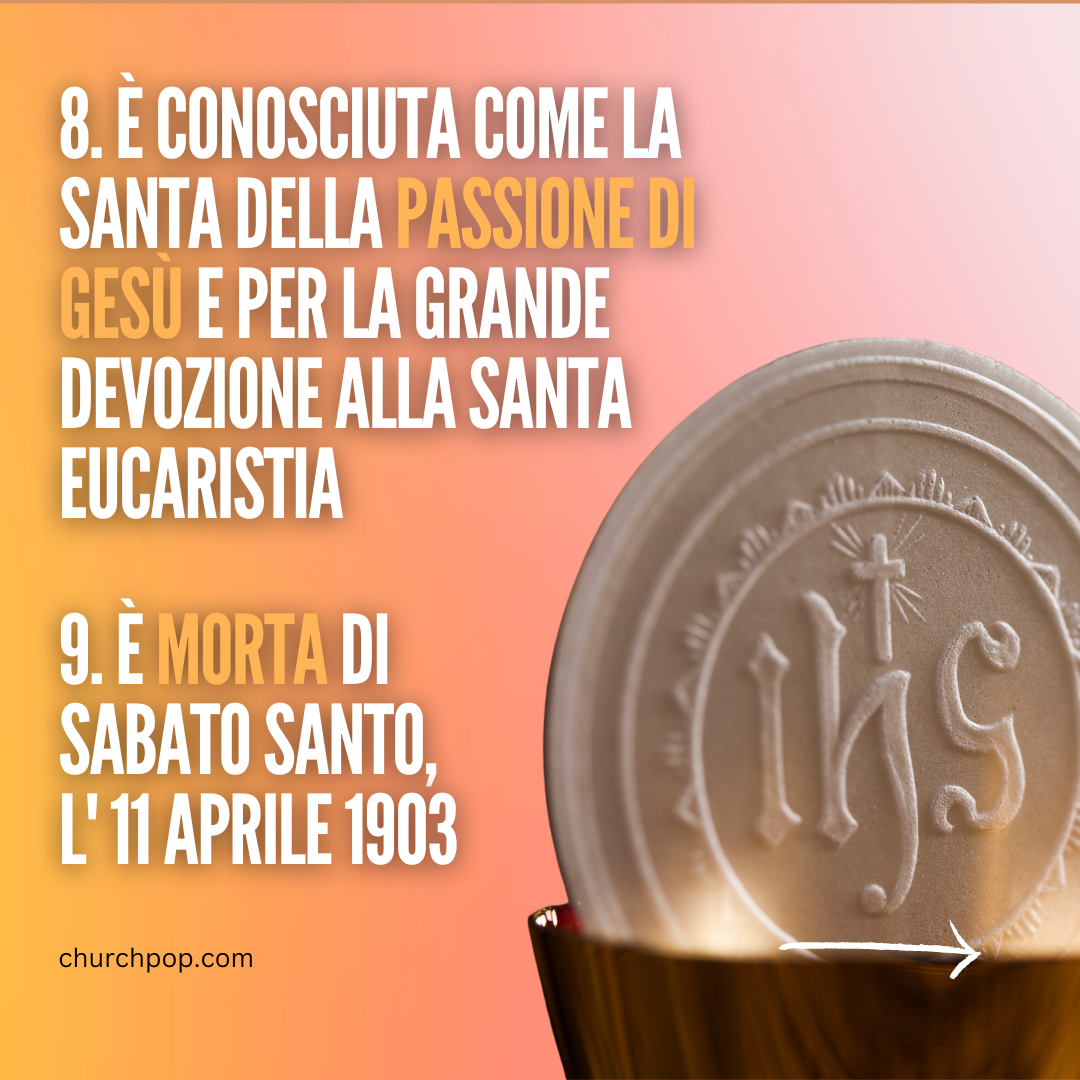 8. È conosciuta come la Santa della Passione di Gesù e per la grande devozione alla Santa Eucaristia
