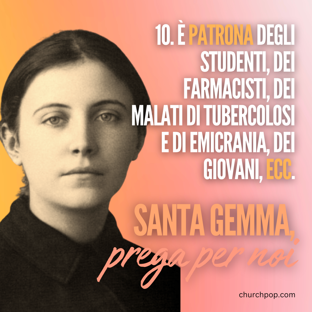 10. È Patrona degli studenti, dei farmacisti, dei malati di tubercolosi e di emicrania, dei giovani, ecc.