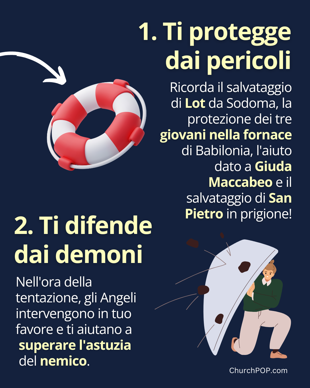 Innumerevoli esempi di protezione degli angeli possono essere citati dalle Sacre Scritture, dalla vita dei Santi e dall'esperienza quotidiana della gente comune! Ricorda il salvataggio di Lot da Sodoma, la protezione dei tre giovani nella fornace di Babilonia, l'aiuto dato a Giuda Maccabeo e il salvataggio di San Pietro in prigione!