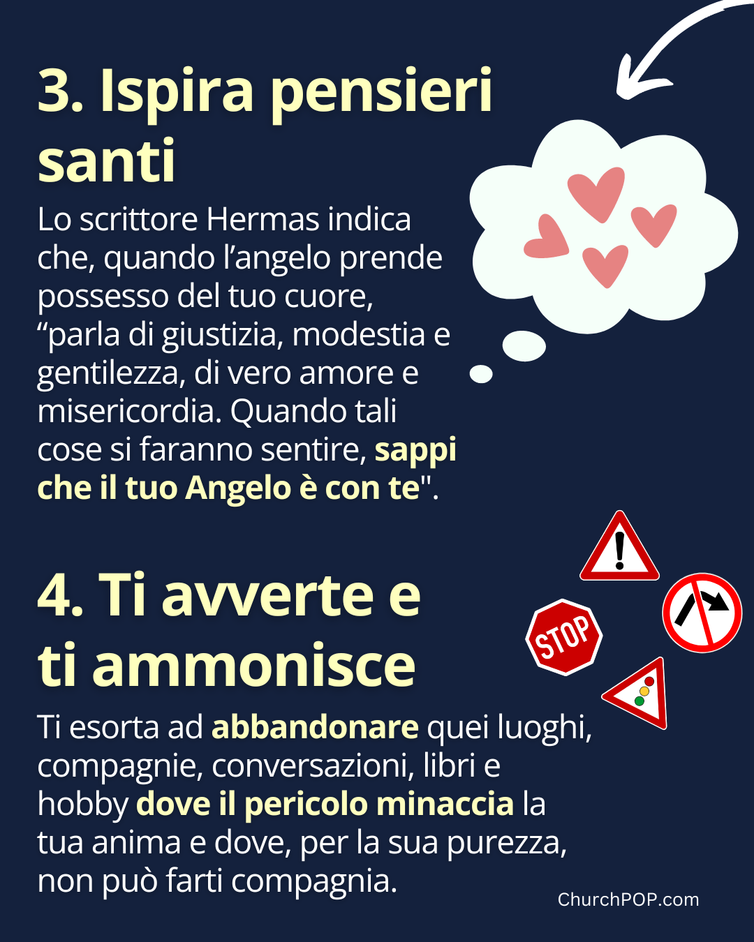 Lo scrittore Hermas indica che, quando l’angelo prende possesso del tuo cuore, “parla di giustizia, modestia e gentilezza, di vero amore e misericordia. Quando tali cose si faranno sentire, sappi che il tuo Angelo è con te".