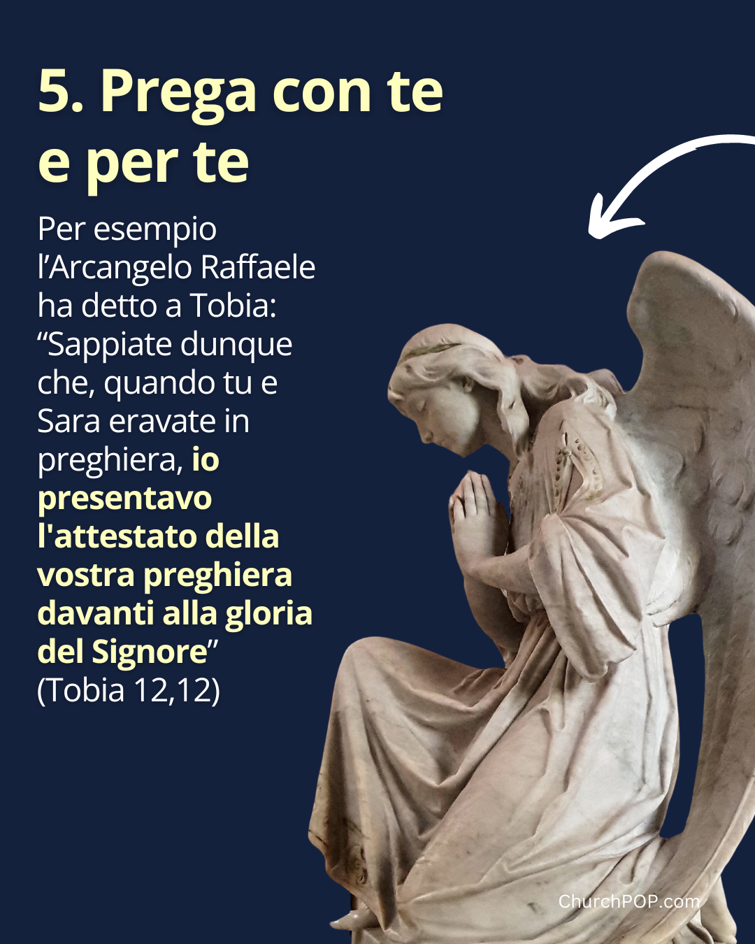 Per esempio l’Arcangelo Raffaele ha detto a Tobia: “Sappiate dunque che, quando tu e Sara eravate in preghiera, io presentavo l'attestato della vostra preghiera davanti alla gloria del Signore” (Tobia 12,12).