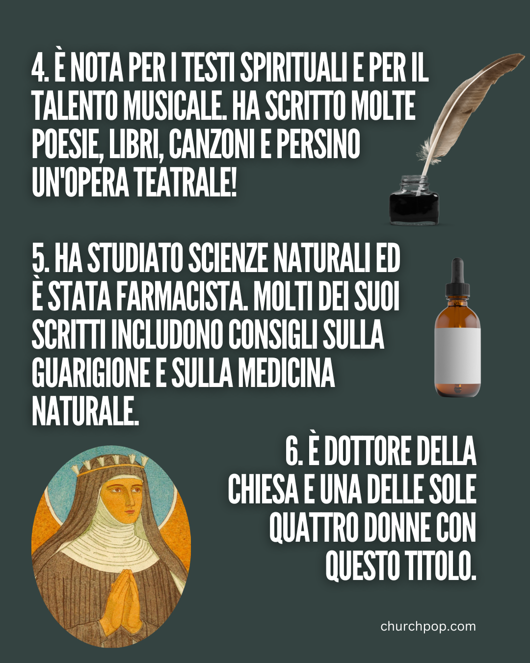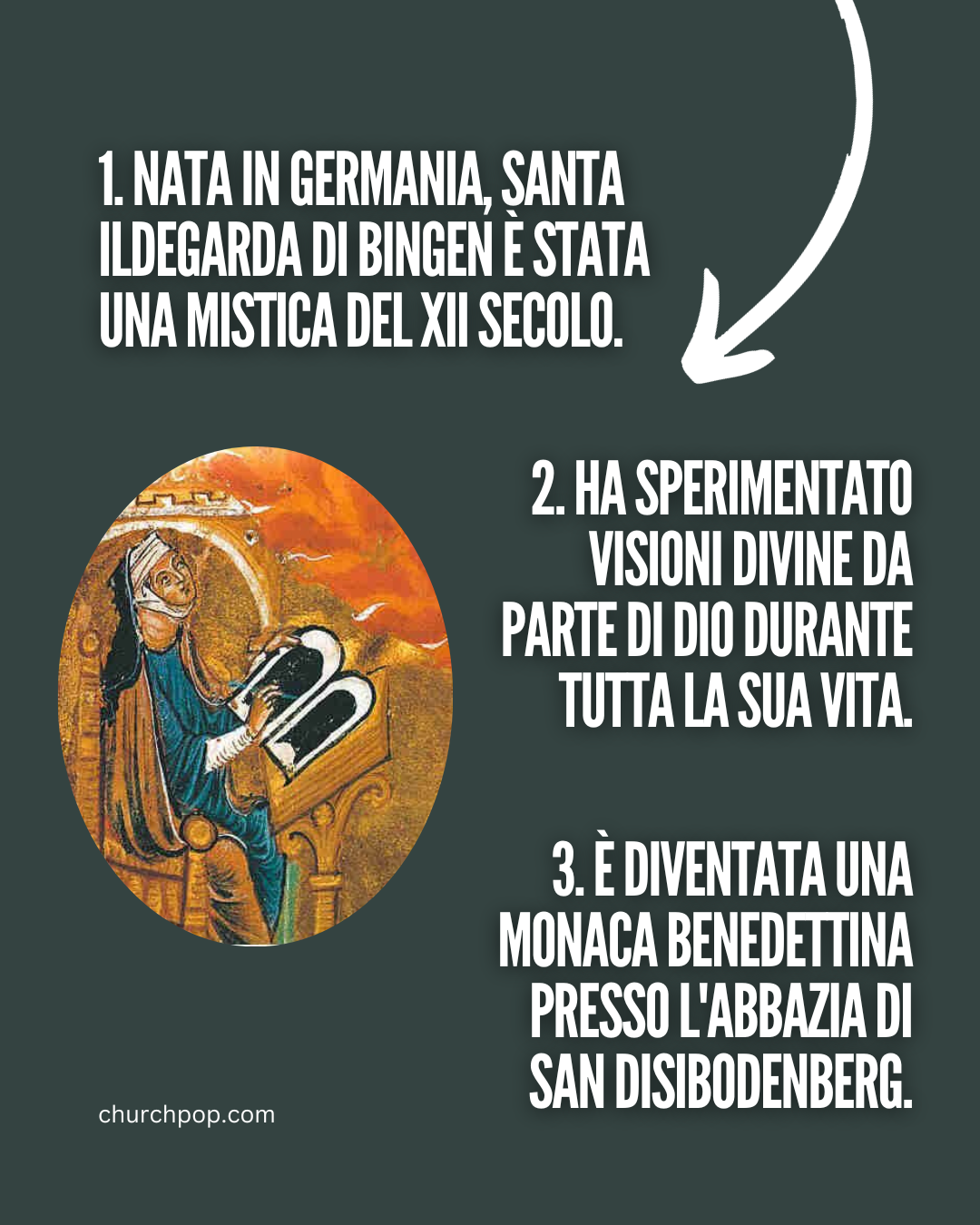 1. Nata in Germania, Santa Ildegarda di Bingen è stata una mistica del XII secolo.