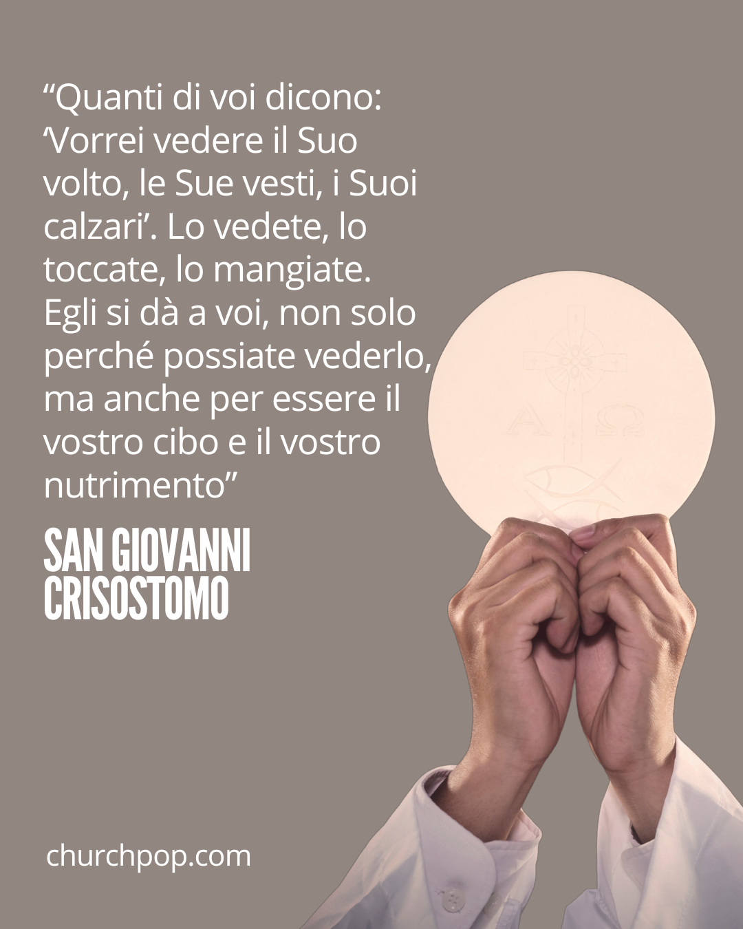 “Quanti di voi dicono: ‘Vorrei vedere il Suo volto, le Sue vesti, i Suoi calzari’. Lo vedete, lo toccate, lo mangiate. Egli si dà a voi, non solo perché possiate vederlo, ma anche per essere il vostro cibo e il vostro nutrimento” - San Giovanni Crisostomo