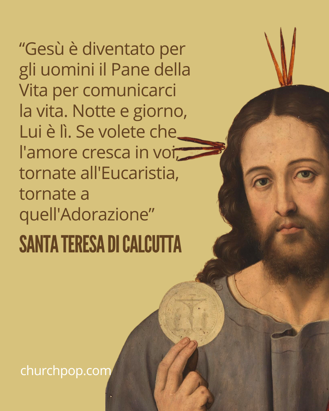 “Gesù è diventato per gli uomini il Pane della Vita per comunicarci la vita. Notte e giorno, Lui è lì. Se volete che l'amore cresca in voi, tornate all'Eucaristia, tornate a quell'Adorazione” - Santa Teresa di Calcutta