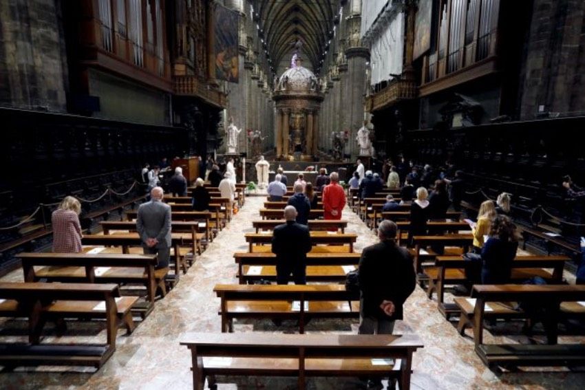 La Chiesa è allagata ma i fedeli arrivano in barca