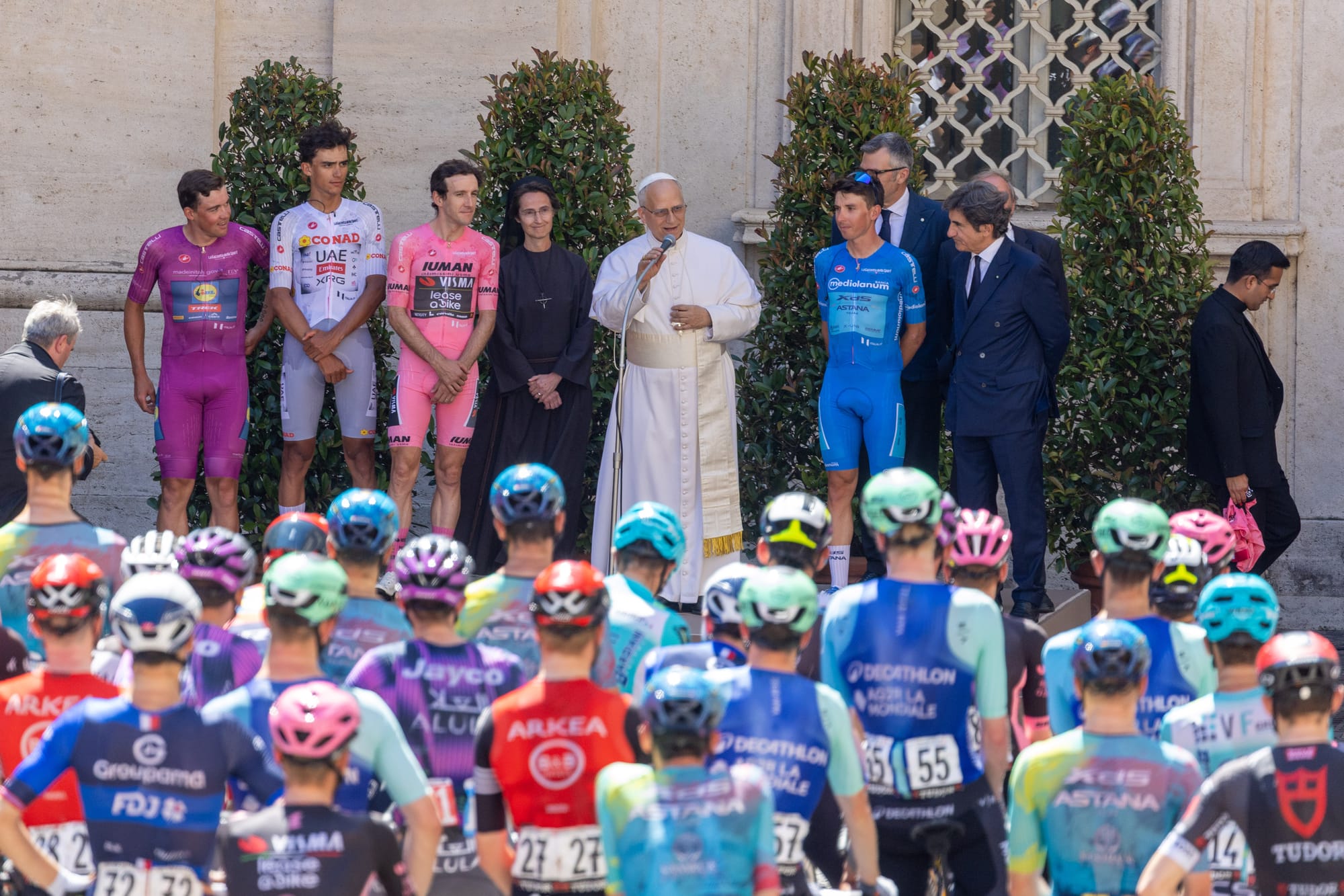 Nel pomeriggio del 1° giugno, durante l'ultima tappa del Giro d'Italia, che si è concluso a Roma, 159 ciclisti sono stati accolti in Vaticano da Papa Leone XIV.