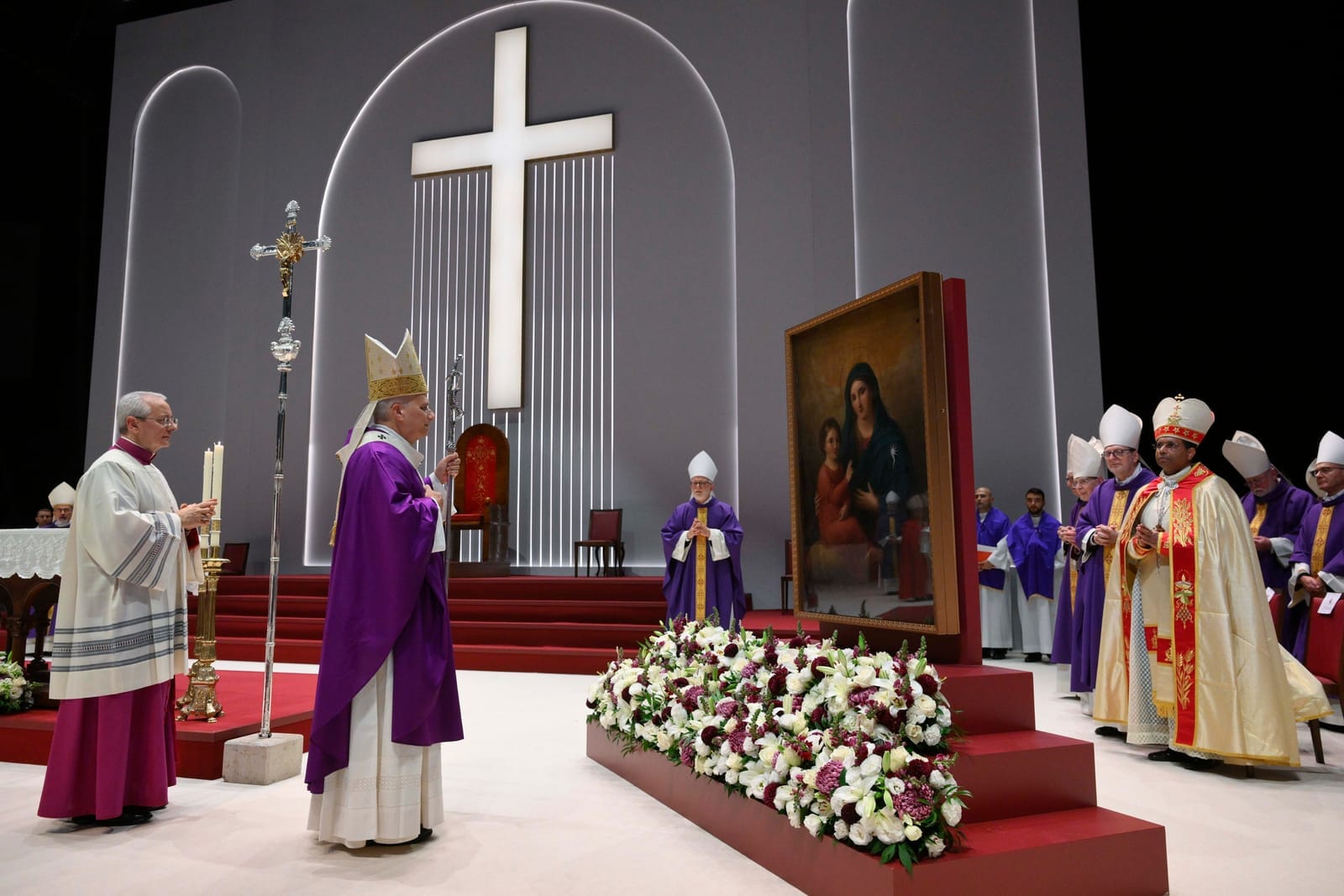 Durante la celebrazione, il Santo Padre ha indossato una casula bianca.