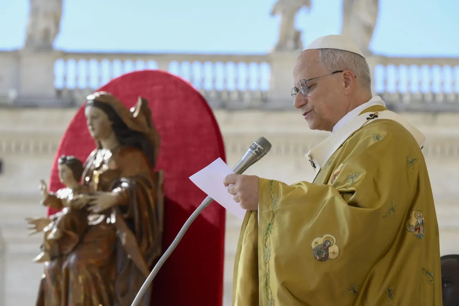 Per questa celebrazione, il Santo Padre ha indossato la stessa casula della sua prima messa come Pontefice.