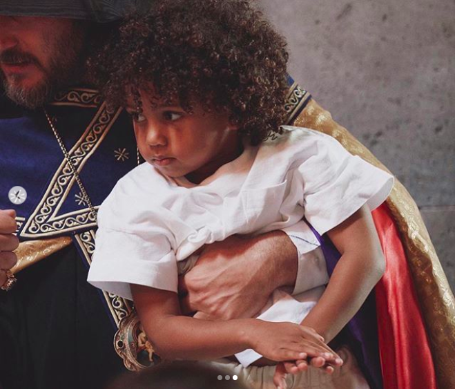 Kim Kardashian ha condiviso sui suoi account social le foto che la ritraggono mentre assiste al Battesimo dei suoi tre figli in Armenia.
