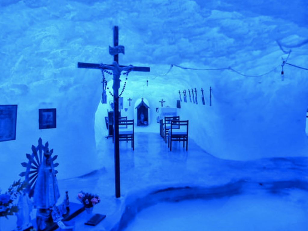 Proprio per alimentare la fede di queste migliaia di persone è nata la Cappella delle Nevi, la chiesa più a sud del mondo. Situata nella base scientifica argentina di Belgrano II, questa cappella “glaciale” è veramente affascinante. Ed ha una caratteristica unica: è scolpita nel ghiaccio!