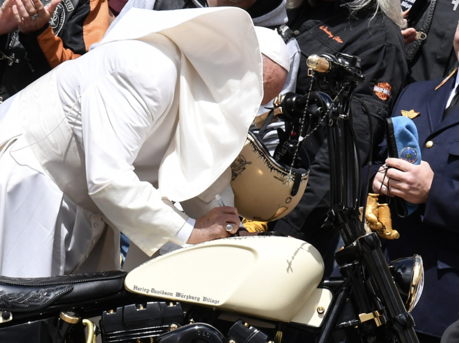 Una serie di Harley bianche perlate, completamente personalizzate, sono state donate al Vaticano, per poi essere rivendute all’asta e così utilizzare i proventi della vendita per delle opere di beneficenza.