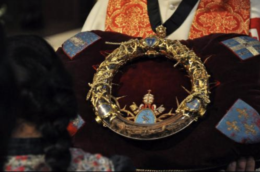Tra le reliquie di maggior valore storico e spirituale per la Chiesa spiccava la Sacra Corona di spine, un fascio di rami di 21 centimetri di diametro che ricopriva la testa di nostro Signore.