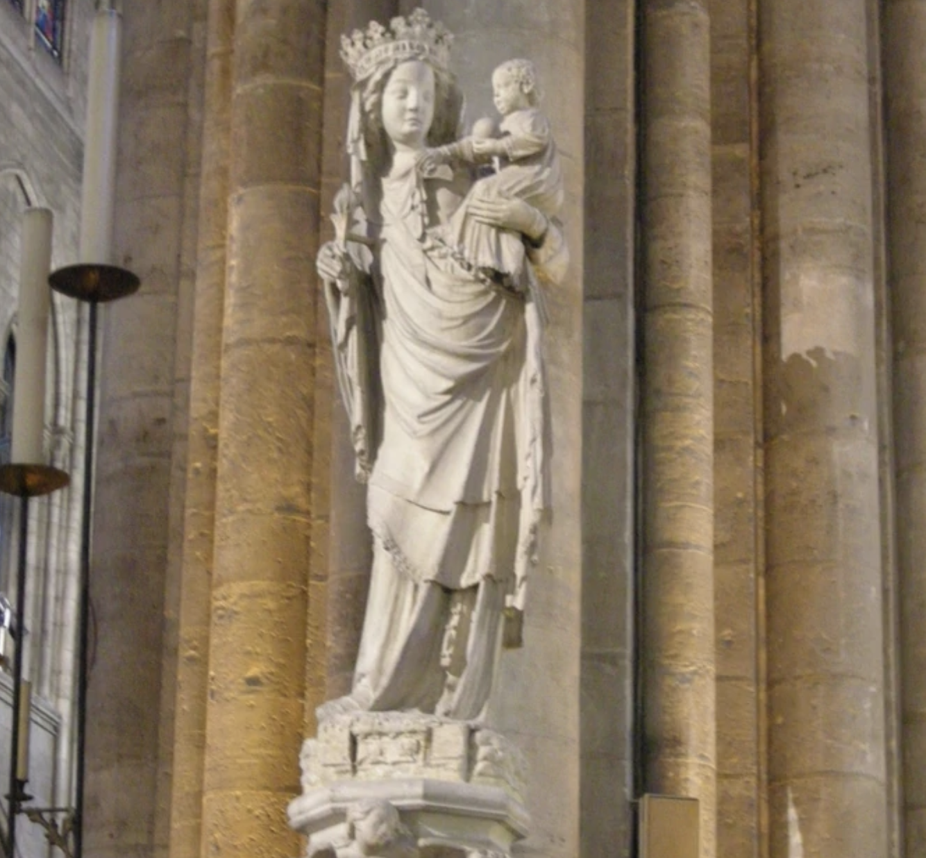 Quasi due metri di misura per questa enorme e bellissima scultura che rappresenta la Vergine Maria e con il Bambino Gesù. Questa statua è conosciuta come la Vergine di Parigi ed è la più nota delle trentasette rappresentazioni della Vergine che ospita la cattedrale. Scolpita nella metà del XIV secolo, proviene dalla cappella di Saint Aignan nell’antico Chiostro dei Canyon.
