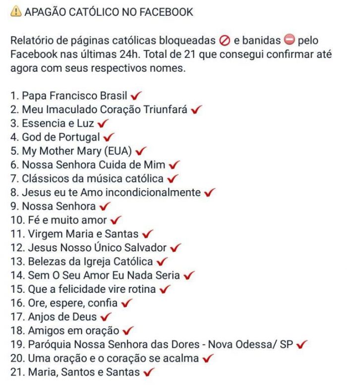 Negli ultimi giorni Facebook ha rimosso molte pagine Cattoliche molto popolari sui social in tutto il mondo, senza dare spiegazioni.